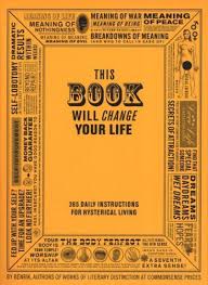 Recently I've been spending a lot of time in the a bookstore near my house. I came across this book a few times and decided to take a look inside. It's called "This Book Will Change Your Life" and true to it's name, it will. The basic idea is that the book gives you something interesting to try out to spice up the day or look at things from a different perspective. Each page is another day of the year and the entire book is to be finished in a year. Some of the ideas are pretty good, like for instance introducing yourself to a stranger and asking them their first impression, or a day where you don't say anything at all in recognition of how much meaningless chatting our lives are filled with. But other ideas are some I wouldn't recommend, like doing a self-colonoscopy or eating a small piece of your furniture. For those of you who are wondering, the self-colonoscopy involves taking a shower head off, putting the tubing in your butt, running warm water through your digestive tract, and then draining out all the waste. It's something you generally do at a hospital but the book insists that this saves time and money. Besides some of the more wacky things (trying to levitate objects, the are-you-a-seial-killer test) this book is a really good idea. I recommend it, especially for people who find themselves in the same endless loop year after year. Check it out.